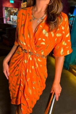 You’re a class of your own, Doll! Let them know it as you strut to the open bar in this stunning floral midi dress. Blooming in cobalt blue and lime green florals and complete with long, dramatic cuffed balloon sleeves, this head turner comes in a wrap style with a captivating leg split. Steal all of the stares and colour clash like a pro in zesty orange accessories.