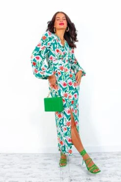 First impressions never looked so good. This stunning midi dress comes in a forest high neck design with an elasticated waist, a thigh split and omg them dramatic sleeves! In a ruched poofy design the sleeves add that layer of class everybody wants to radiate when they’re out on the town. Stay classic with black accessories or spice it up with colour if you’re feeling daring.Â