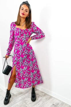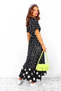 Blockin’ out the haters! This utterly chic midi dress features a flattering high neck and sleeveless design with a neck tie that can be styled multiple ways. Complete with an elasticated waist to cinch the silhouette and a dramatic asymmetric frilled hemline, we are totally obsessing over the red and pink colour block. Pink or red accessories are a must when it comes to styling and of course a lustrous red lip to finish the look.