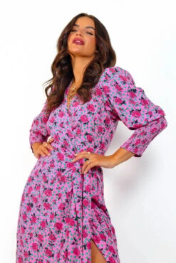 Glamorous Drive Em Wild – Pink Multi Rose Midi Wrap Dress